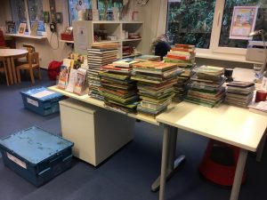 Wir lesen die Bücher jetzt Stück für Stück in unser System ein, damit ihr sie auch ausleihen könnt.